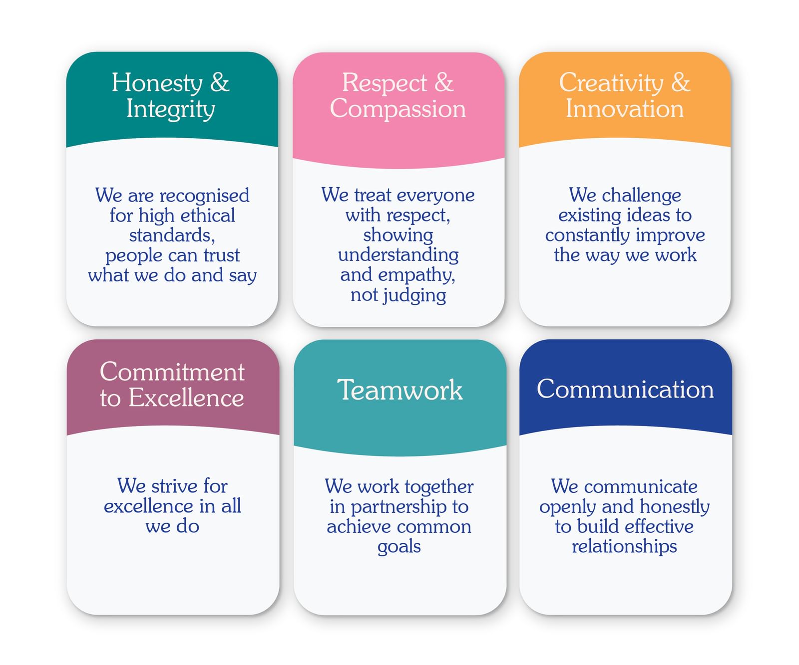Our values are the foundation for how we work together and how we treat others. They underpin the principles we strive for, in ensuring that we value diversity and partner with the community to enable all South Australians to achieve better oral health and wellbeing.