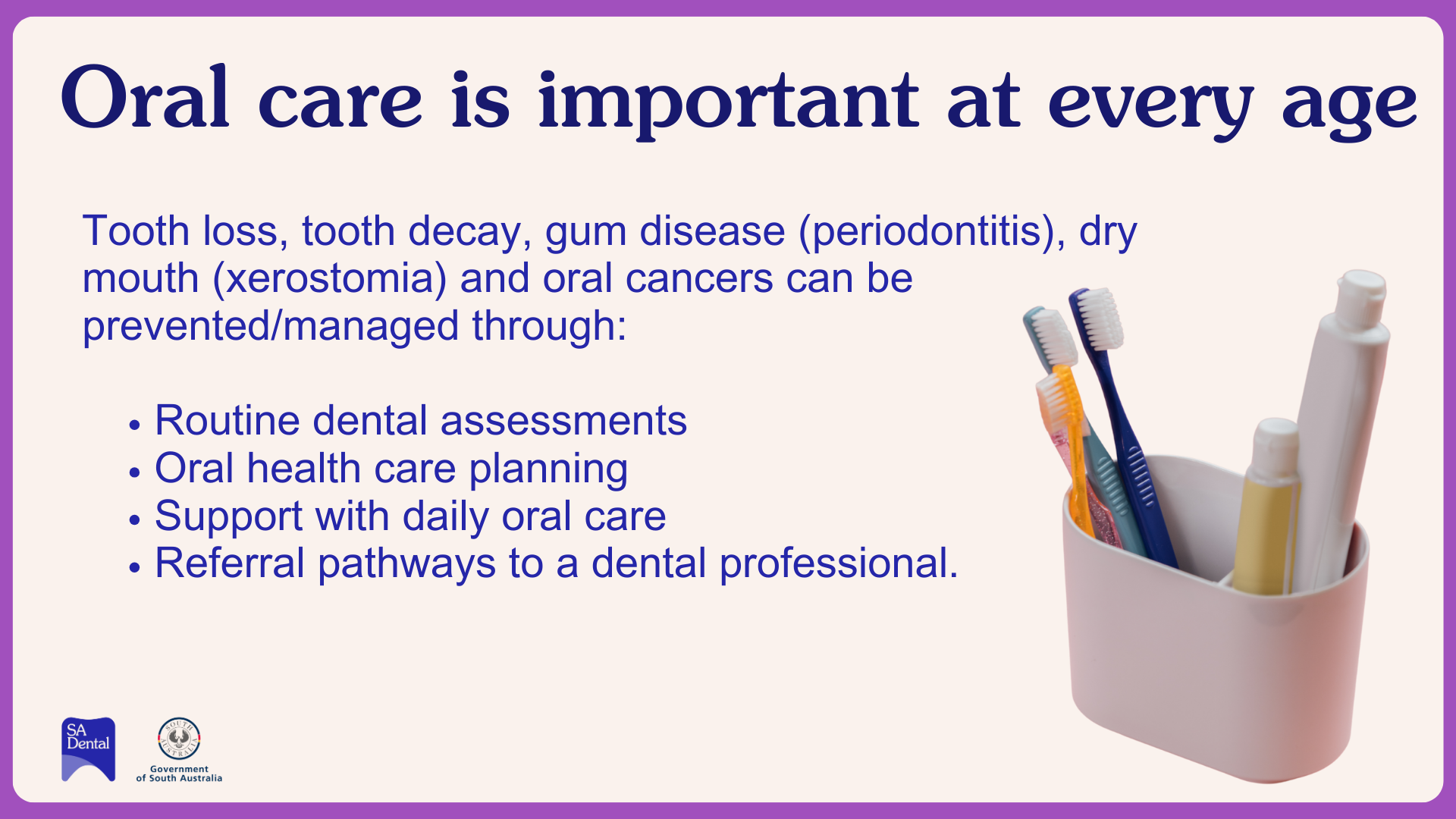 - Oral care is important at every age
