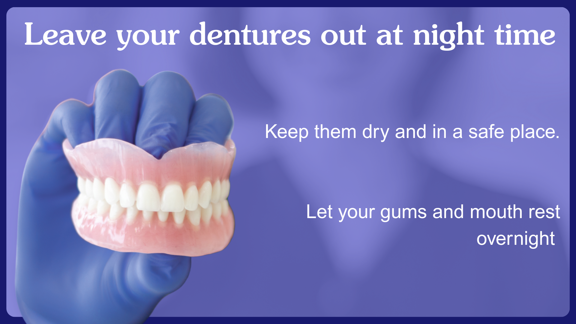 - Leave your dentures out at night time