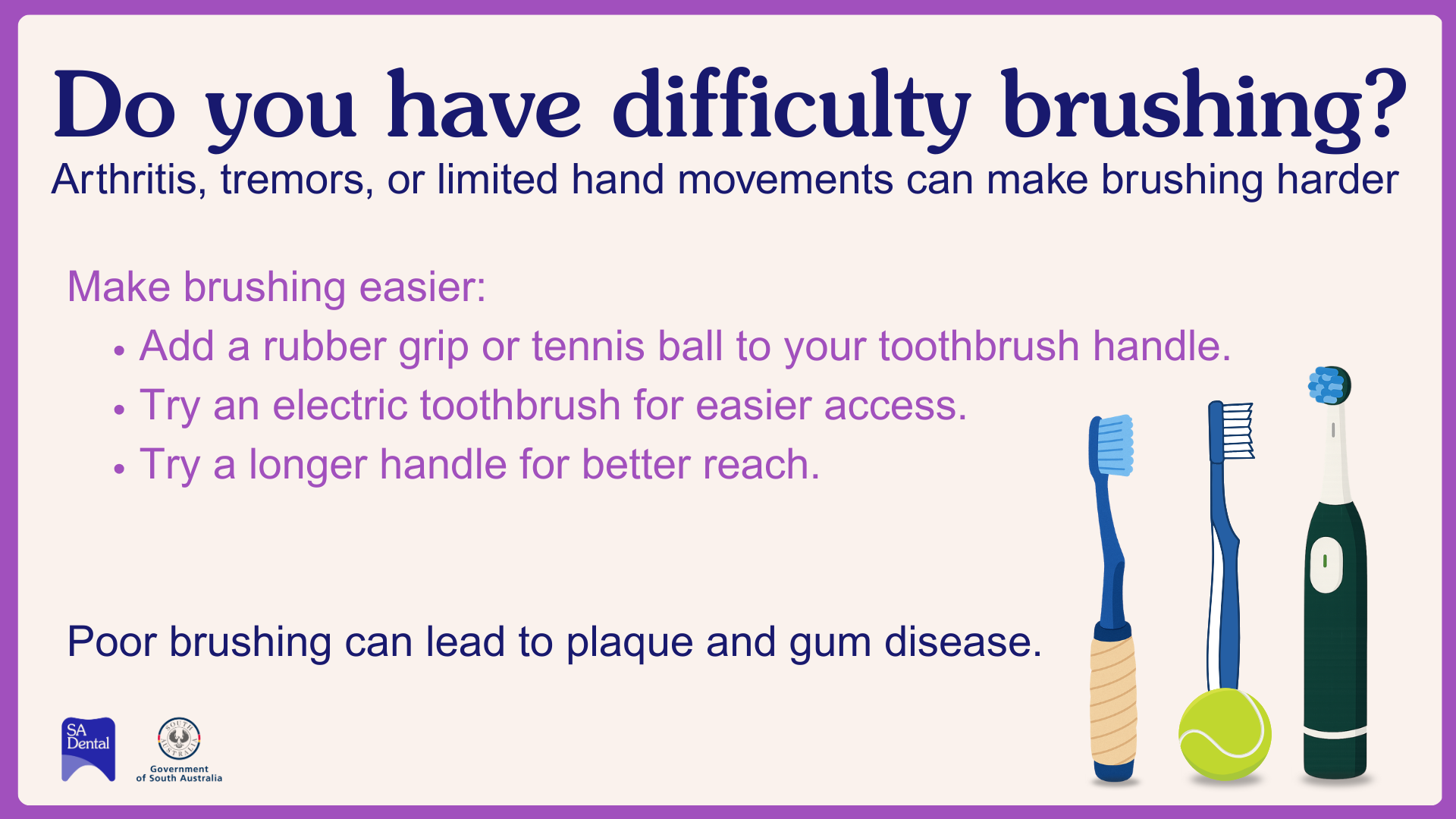 - Do you have difficulty brushing?